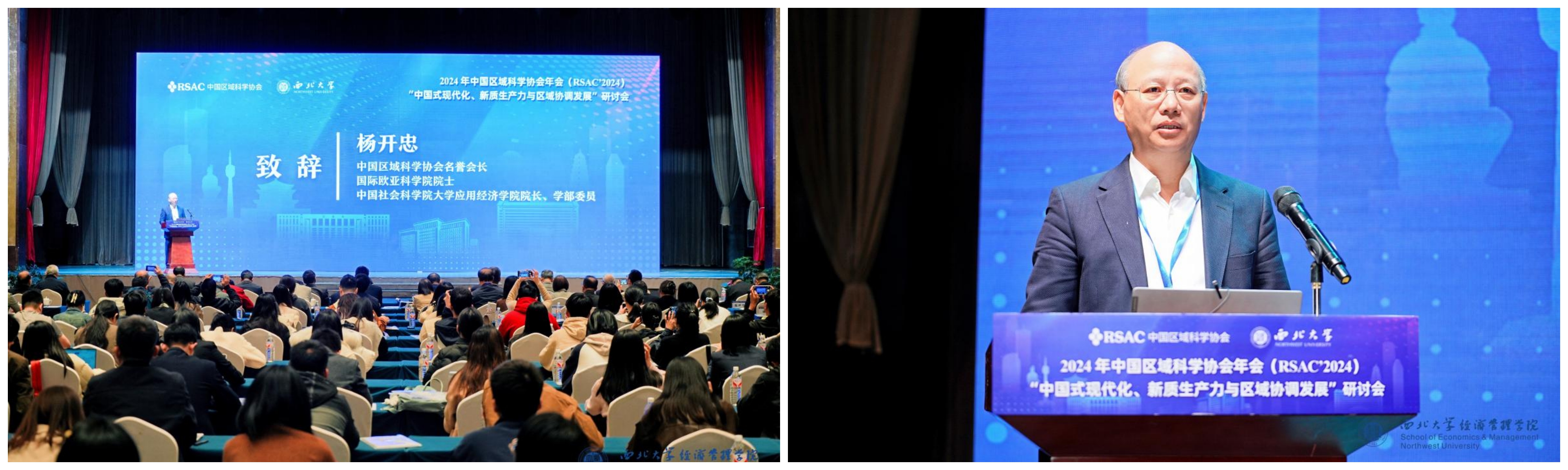 开幕式上,杨开忠代表中国区域科学协会致辞,他指出中国区域科学协会作为我国区域科学领域的权威学术团体,自成立以来通过推动学术交流与理论创新,为中国现代化建设提供了重要的学术支撑。协会通过不懈努力,实现了中国区域科学研究在国际上从简单跟跑到并跑的转变。此次年会聚焦“中国式现代化、新质生产力与区域协调发展”,旨在回应中国式现代化对中国区域科学提出的重大现实需求,探索以新质生产力为着力点的高质量发展路径,实现更高水平的中国区域科学理论与研究方法的创新与突破。