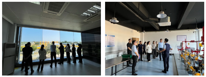 第三站师生们来到了狄寨原门站。在门站负责人的讲解中大家得知,狄寨原门站是天然气进入西安的第二门户。门站具有调压、过滤、计量、加臭等四大功能,在这里需要实现城市燃气的运行平稳和调峰。目前门站已经实现了遥调、遥控、遥测等自动化功能,运行十余年来,安全、平稳,在西安市的燃气运营,尤其是冬季供应中发挥了非常重要的作用。