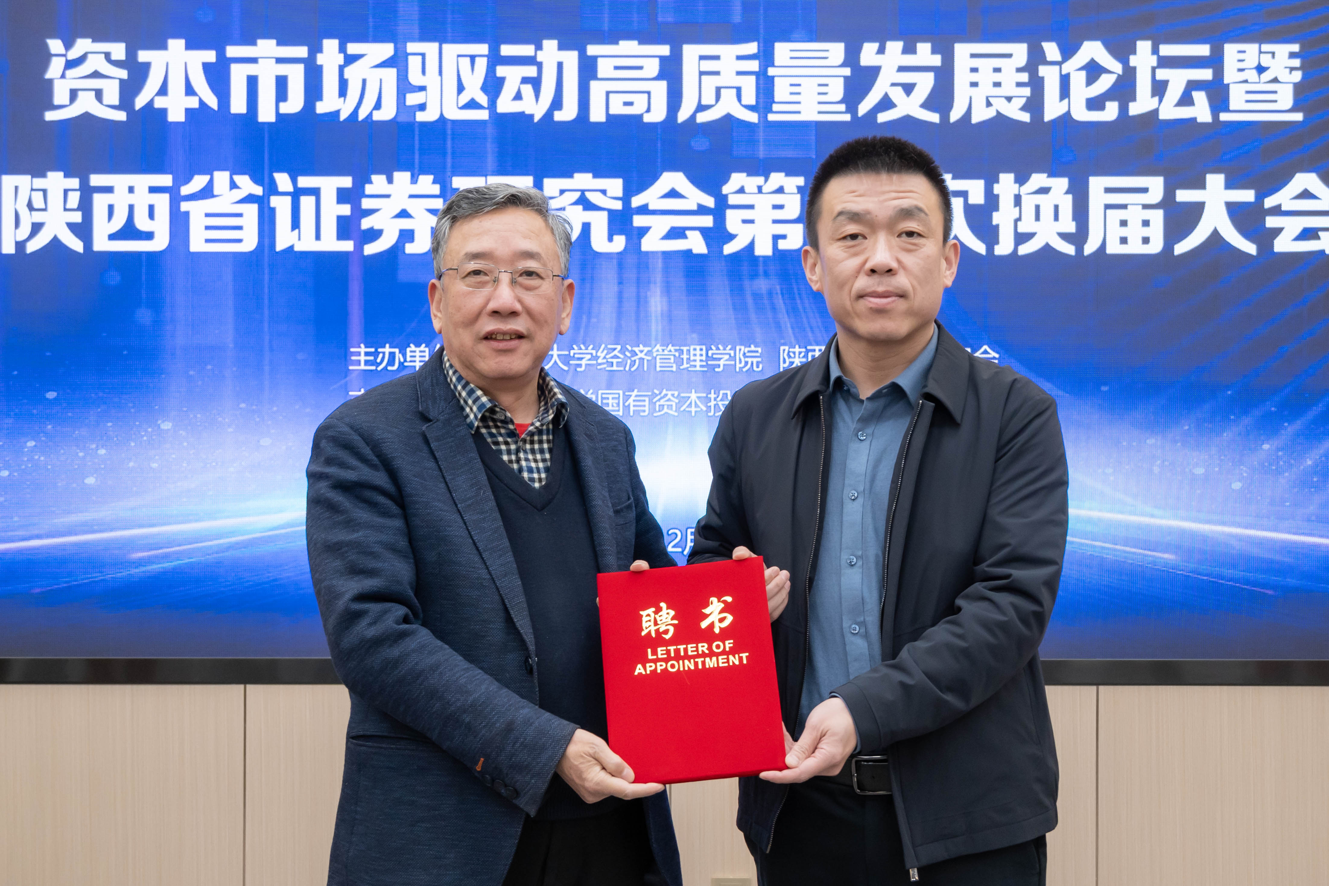 12月25日,由冰球突破豪华版官方网站、陕西省证券研究会、冰球突破豪华版官方网站国有资本投资运营研究中心联合主办的“资本市场驱动高质量发展论坛暨陕西省证券研究会第四次换届大会”在冰球突破豪华版官方网站成功举办。来自西安财经大学、西安邮电大学、陕西省证券投资基金业协会、兴业证券、华鑫证券、开源证券、浐灞基金等省内近40家高校、行业协会、金融机构、上市公司的60余名嘉宾代表参会。冰球突破豪华版官方网站党委书记张宇、副院长岳利萍、金融系主任王满仓以及冰球突破豪华版官方网站部分师生代表出席会议。会议由冰球突破豪华版官方网站副院长张华岭主持。