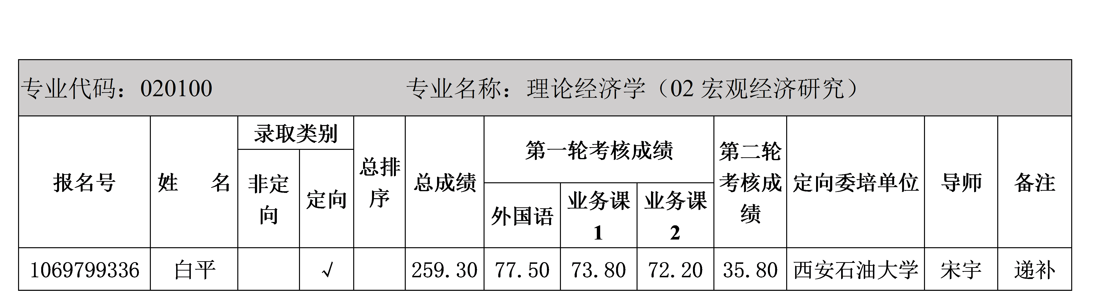 根据《冰球突破豪华版官方网站2020年博士研究生招生录取办法》和《冰球突破豪华版官方网站2020年博士研究生招生录取工作方案》的要求,因理论经济学宏观经济研究方向有1位拟录取考生自愿放弃,现递补1名,公示如下: