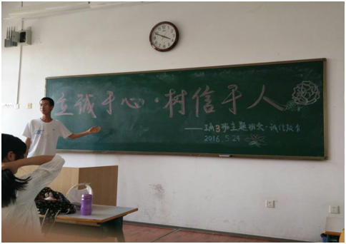 根据我校2016年“诚信教育主题月”的活动要求,冰球官网团委于2016年5月底开展了为一周的“筑梦青春,诚信同行”诚信主题教育系列活动。通过本次形式多样、内容丰富的主题教育系列活动,不仅进一步强化冰球官网学生的诚信意识,提高了冰球官网学生的综合素质,也促进国家助学贷款相关工作的开展,强化冰球官网资助工作的育人效果。同时,通过本次系列活动的开展,对冰球官网学生中存在的诚信问题有了更为深刻的认识,为冰球官网进一步做好学生诚信教育打下了基础。