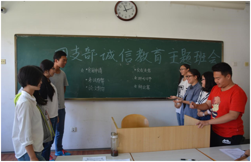 在冰球官网团委的统一安排下, 冰球官网各团支部围绕活动主题,结合各专业特点,自行开展了主题突出、内容丰富的诚信主题团日活动。在团日活动中,各团支部重申了国家资助政策,分享了许多诚信小故事,并组织同学们对目前的校园诚信问题展开了丰富的讨论。通过团日活动的开展,呼吁了冰球官网学生从现在开始,从细节着手,通过实际行动认识诚信、感悟诚信、坚持诚信,不断养成诚实守信的良好习惯和道德品质。