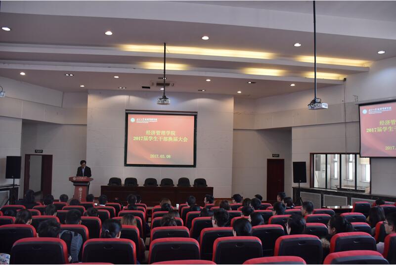 2017年3月8日下午4点,冰球官网在金海恒业报告厅隆重举行冰球突破豪华版官方网站2017年学生会换届大会,团委书记郝锐老师主持本次大会,院党委副书记李一凡老师,学院团委全体老师,新老学生会全体成员参加了会议。
