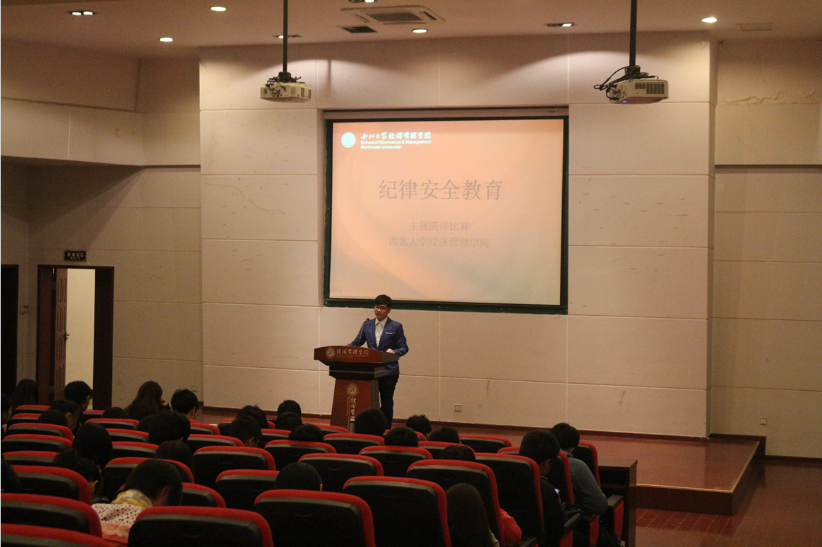 比赛中,同学们从身边事例出发,从加强自律守纪意识和安全防范能力的视角阐释了对争做文明守纪学子,促安全和谐校园的理解。董妍同学以《摒弃陋习,做文明守纪的大学生》为主题进行阐述,以“文明”入手,从国家文明高度出发,引发同学对社会不文明现象的思考。随后从学校谈起,讲述了如何遵守校纪校规以及这样做的好处和意义。演讲内容平实严肃,发人深省,语言生动犀利,极富感染力和号召力,得到了同学们热烈的掌声,并最终成为本次演讲比赛的冠军。王山功同学激情地了列举了社会上的安全事故来告诉我们注意安全,提高安全防范意识。周宛瑾自信洒脱地告诉我们生命的重要性和脆弱性,以此来警醒我们加强校园安全,珍爱生命。他们的演讲也给观众们留下了深刻印象。