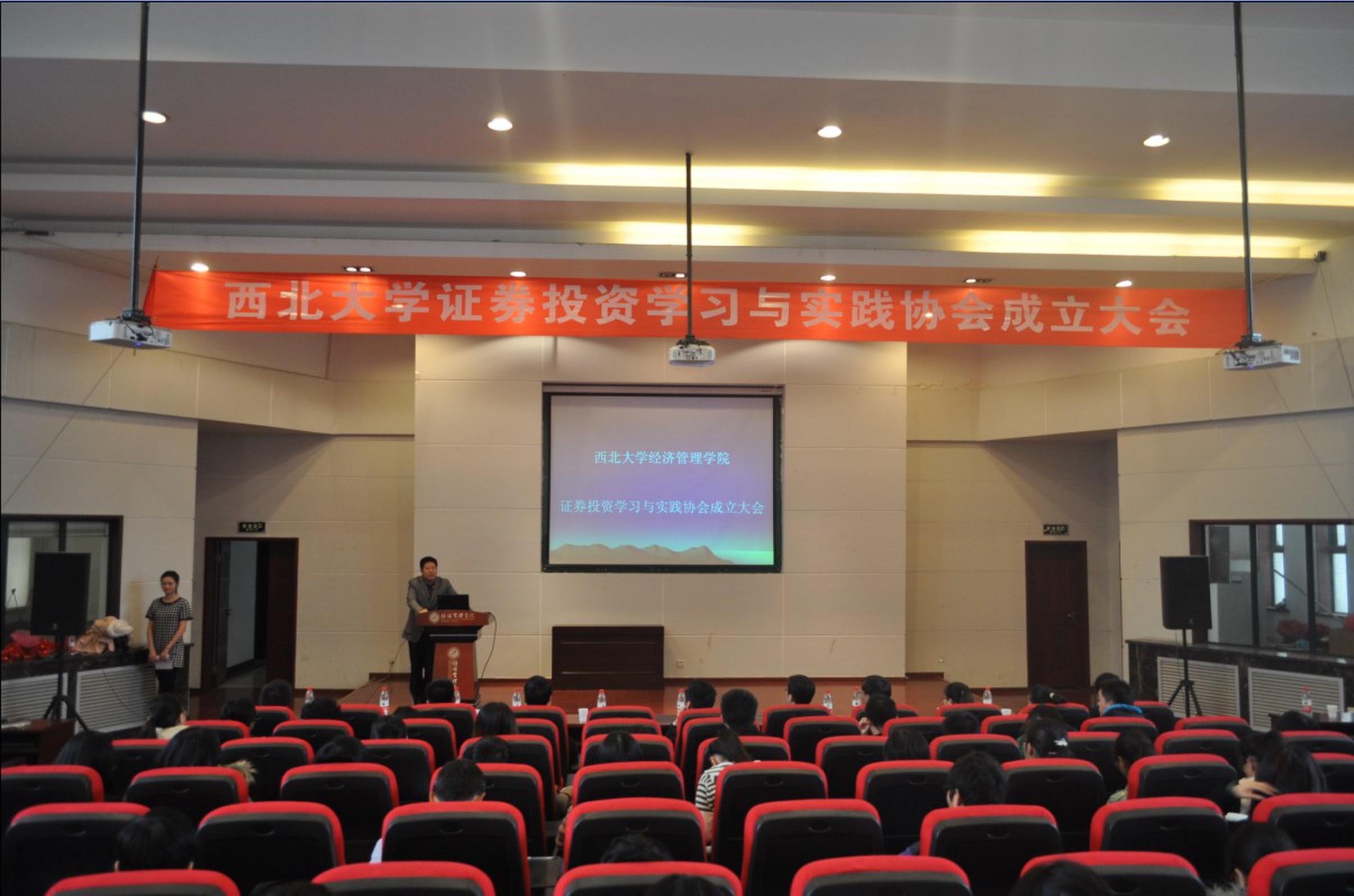 11月13日下午,冰球突破豪华版官方网站证券投资实习与实践协会成立大会在金海恒业报告厅举行。国泰君安西北分公司总经理鲁南先生、院党委副书记李一凡老师、经济系副主任刘瑞明副教授出席,院团委老师和二百多名学生参加了大会。