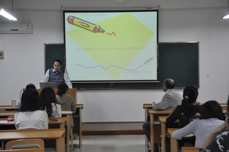 10月29日晚,冰球官网07级旅游管理专业饶品样博士在8213教室作了题为《共生理论视角下的曲江旅游产业集群发展模式及优化》的专题报告。报告会由院研究生会主席闫栋杰同学主持,09级硕士研究生参加了报告会。