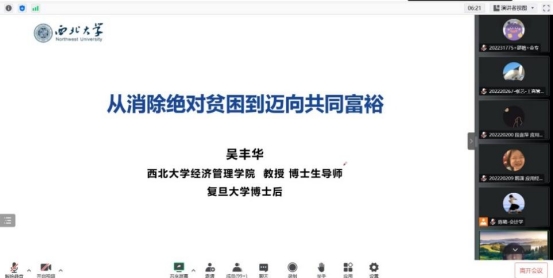 10月26日,经济学系吴丰华老师为全体冰球突破豪华版官方网站研究生开展了主题为《从消除绝对贫困到迈向共同富裕》的学术讲座。“中国式现代化是全体人民共同富裕的现代化。共同富裕是中国特色社会主义的本质要求,也是一个长期的历史过程。” 吴丰华老师指出消除绝对贫困的意义在于中国通过实践走出特色减贫道路,并从宏观层面对脱贫攻坚战略的基本框架和考核制度进行了讲解,使同学们深刻体会到我国“历史性地解决了绝对贫困问题,为全球减贫事业作出了重大贡献。”