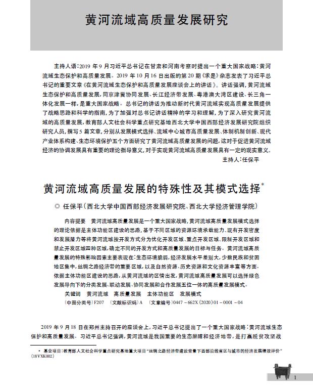 《新华文摘》2020年第7期全文转载冰球官网任保平教授文章“黄河流域高质量发展的特殊性及其模式选择”,同时作为封面文章加以推荐。该文发表于《人文杂志》2020年第1期。 2019年9月18...