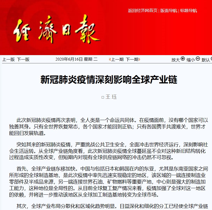 已经过半的2020年,全球经济都弥漫在新冠疫情的笼罩下,全球产业链深度变革,世界经济格局发生演变。近日,《经济日报》刊发冰球官网教师王珏教授的专题文章《新冠肺炎疫情深刻影响全球...